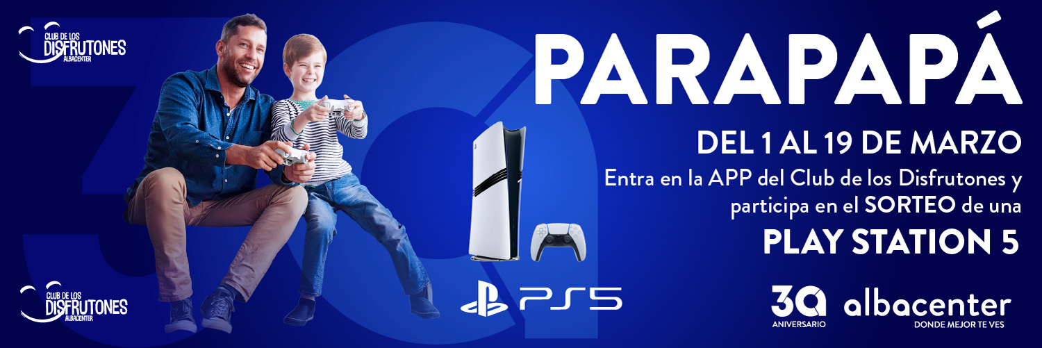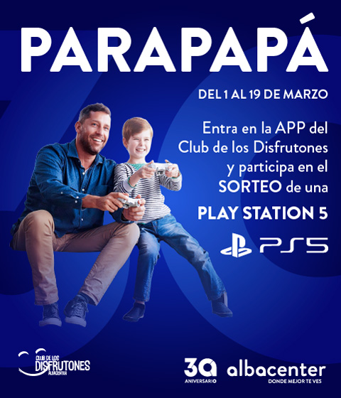 Este Día del Padre, en Albacenter vamos a lo grande 🎁🎮 Este año Albacenter sortea un regalo que dejará a Papá con la boca abierta 😮 Sorteamos una Play Station 5, para compartir los juegos que más os gusten. Participar es muy fácil: Del 1 al 19 de marzo confirma tu participación en este sorteo haciendo clic en PARTICIPAR y acepta las bases legales. Solo te queda esperar a ser ganador 😉 ¡Mucha suerte Disfrutón!